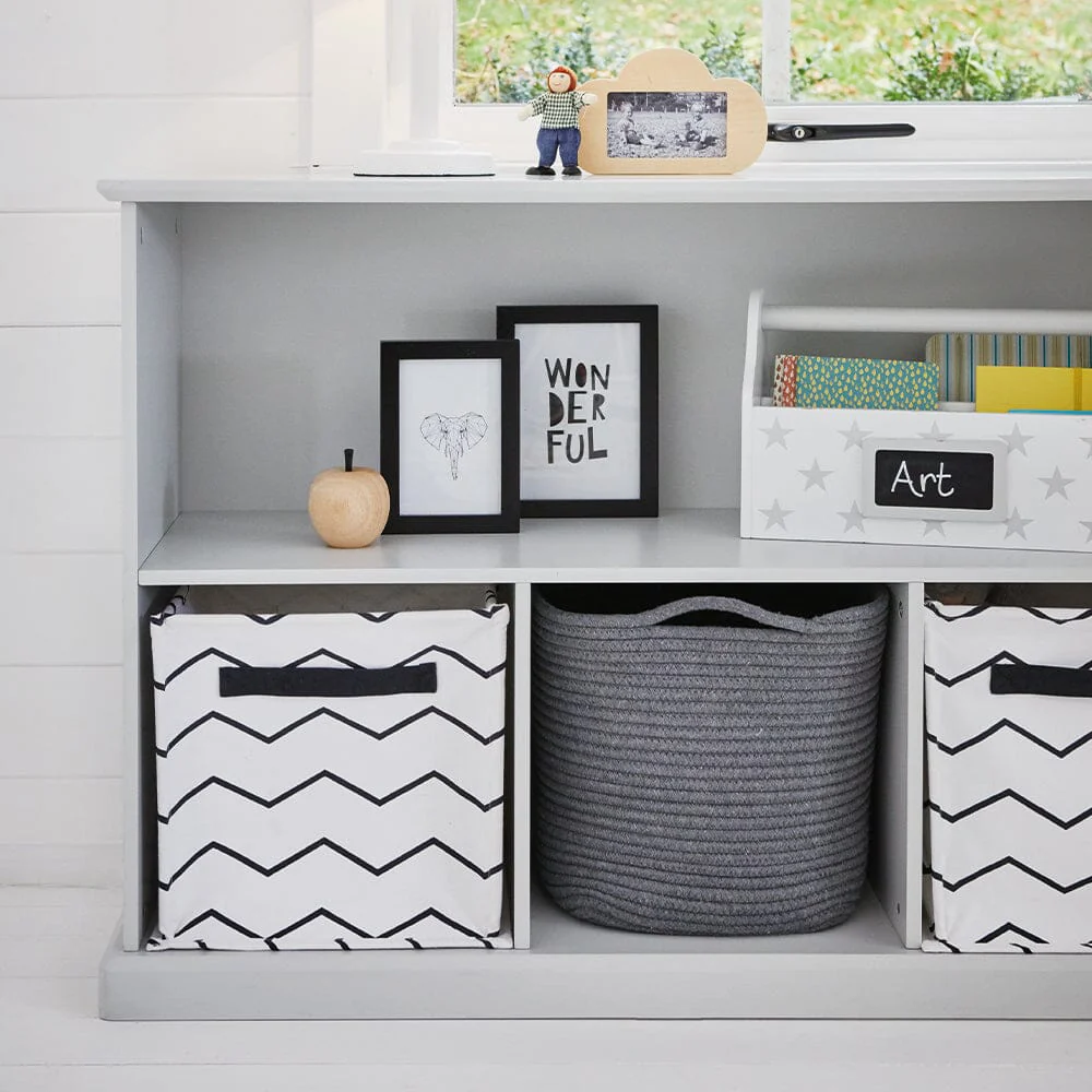 All our Abbeville Cube Storage is great for tidying up but this piece is especially designed for children to use independently; it holds three of our Storage Cubes or Baskets, and has a low shelf which is ideal for books, larger toys or one of our Carry Caddies. This gorgeous Grey colour works brilliantly in family spaces.