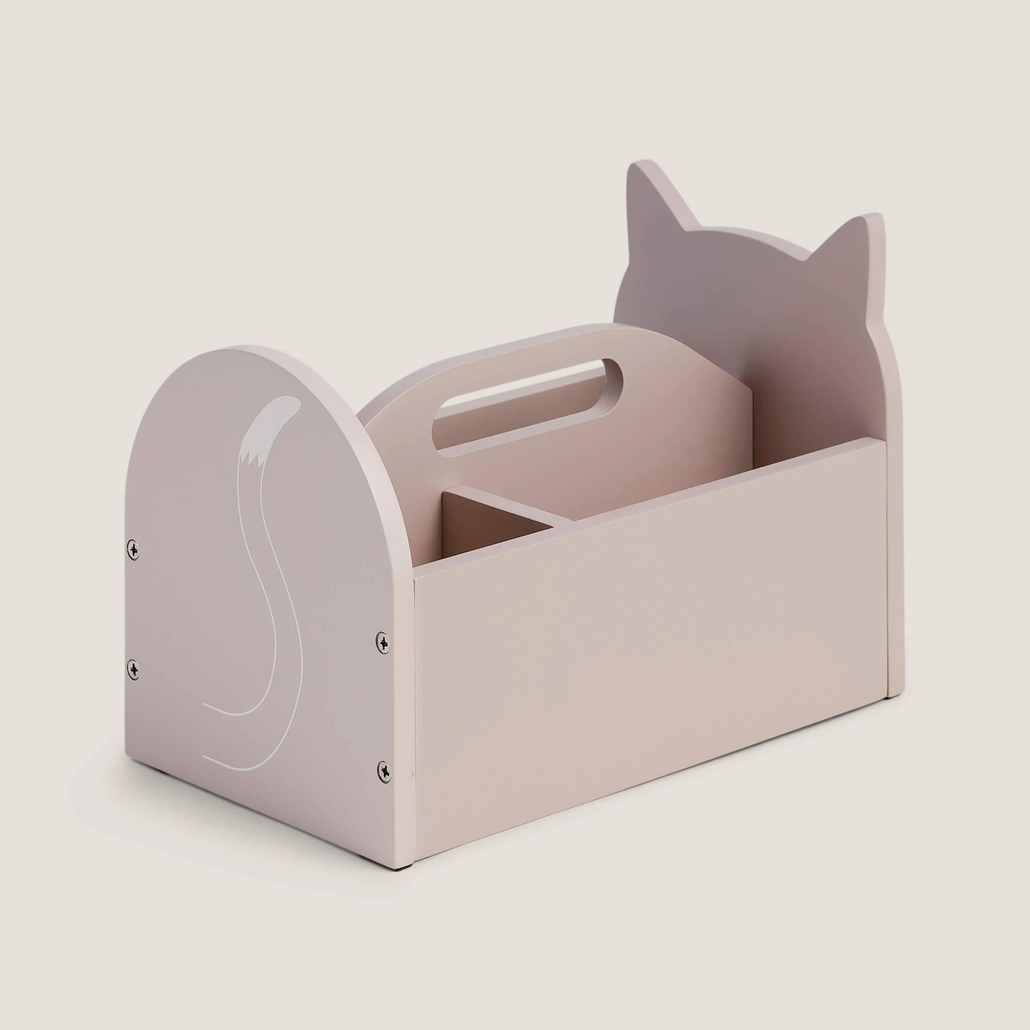 Keep your little one's art supplies, stationery, and small treasures neatly stored with this adorable cat-shaped carry caddy. Designed in a soft pink shade with a charming kitty face, it's a fun and functional addition to any playroom or desk.