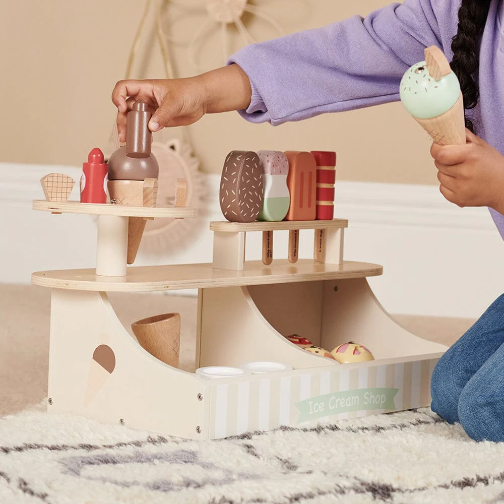 The toy ice cream shop itself is made out of painted wood and it's accompanied by 25 pretty, wooden accessories you can slot together, including magnetised scoops of ice cream, cones, wafers, toppings, lollies and a scoop. Perfect for inspiring creative play and practicing those fine motor skills.