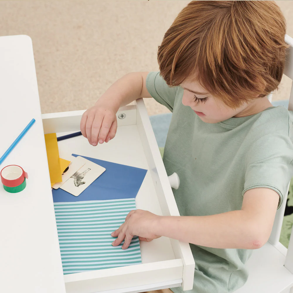 We've given our bestselling Junior Whittington Desk longer legs to make it suitable for older children (5yrs+). It's smart, space-efficient, with storage shelves, a useful noticeboard, plus an opening for cables and a central, storage drawer. Even grown ups can use it. This lovely desk is made from sturdy MDF with a Bright White finish. We recommend teaming it up with our Nelson Chair .
